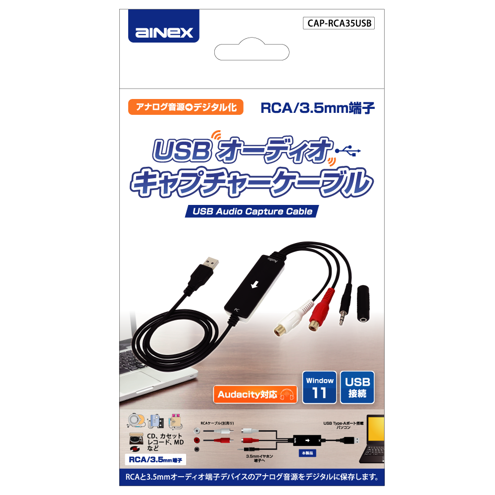 - RCA/3.5mm端子-USBオーディオキャプチャーケーブル