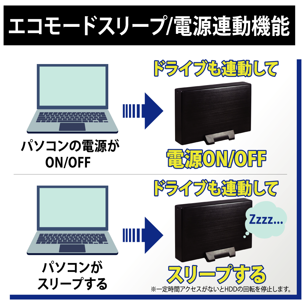 UASP対応で高速データ転送。スリープ/電源連動機能搭載。