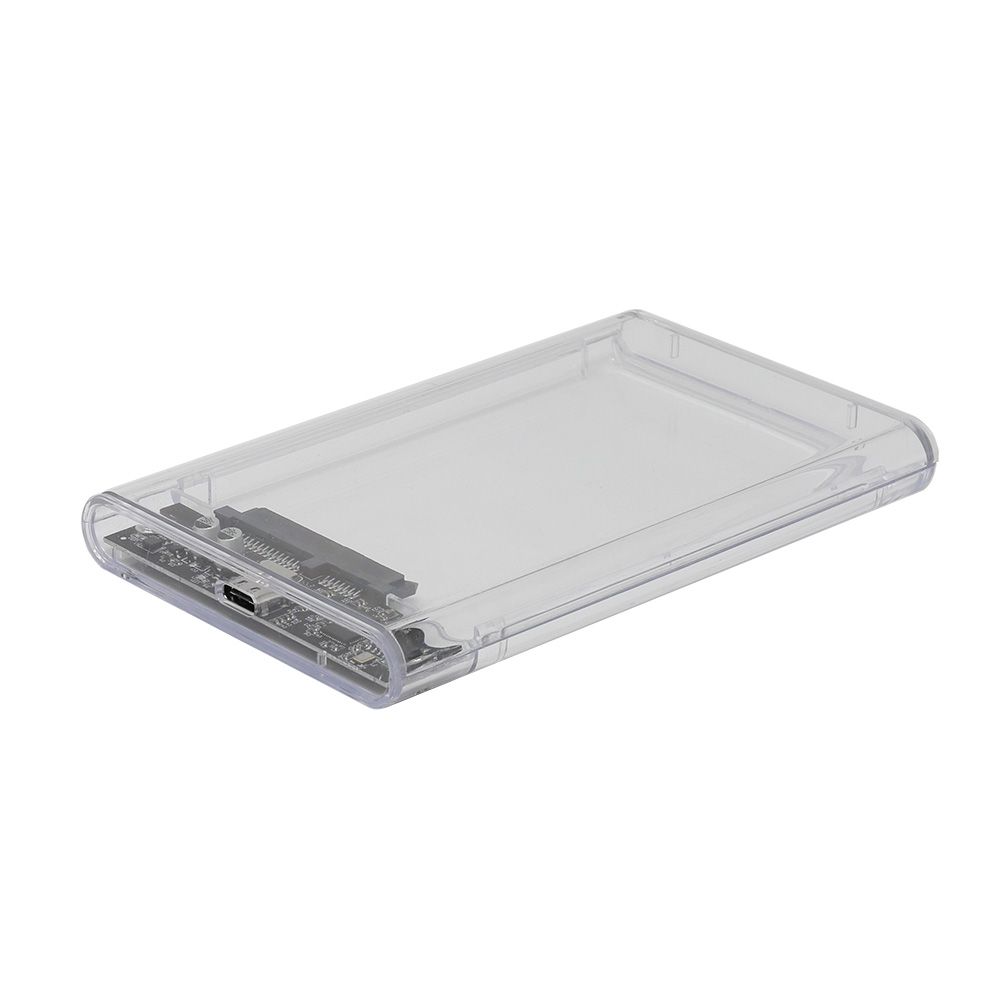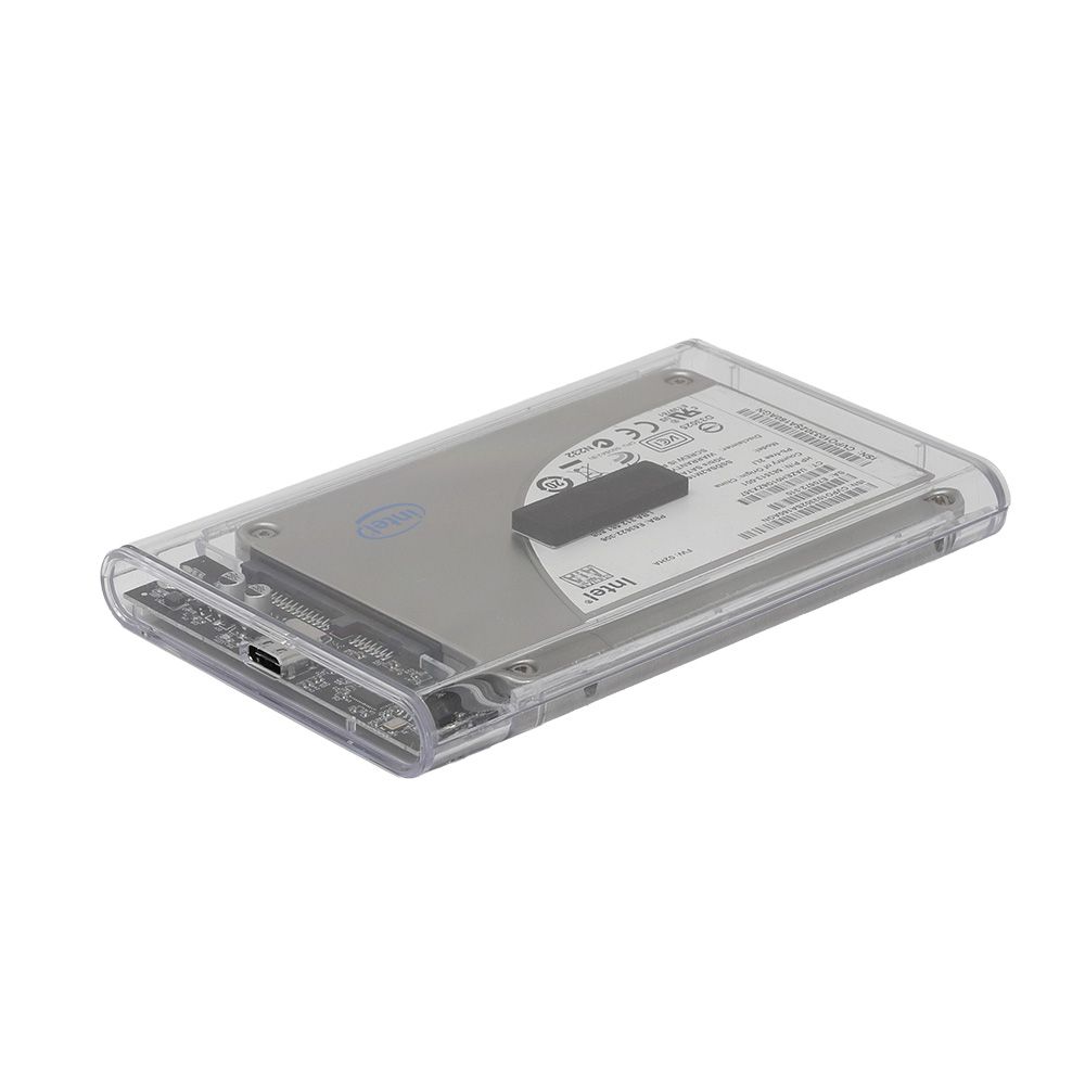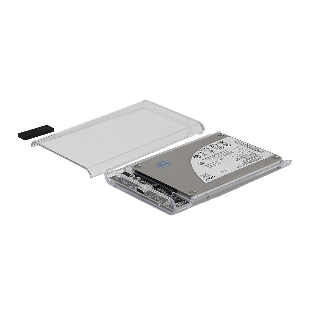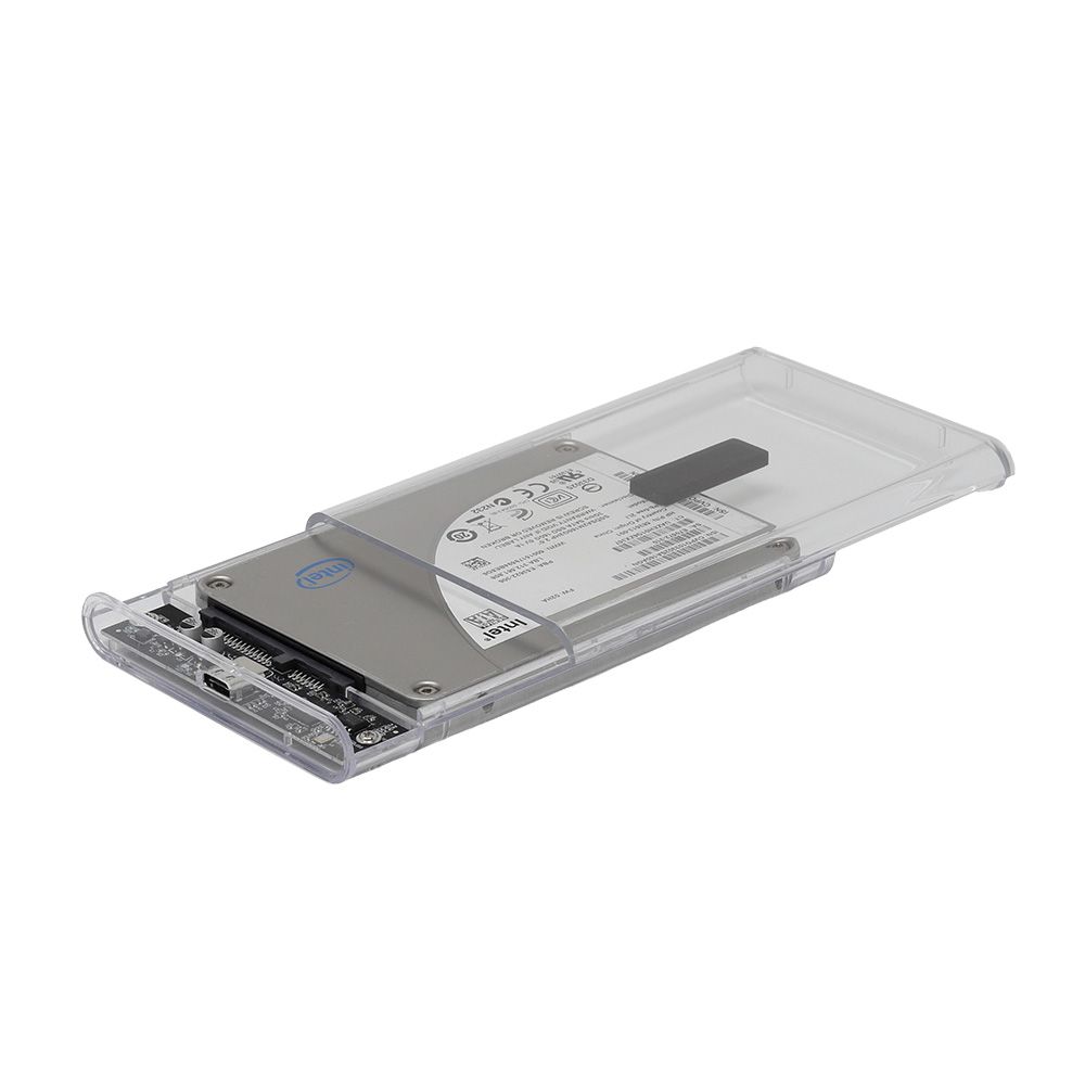 - 透明なプラスチックケースで、内部のSSD/HDDを確認できます。