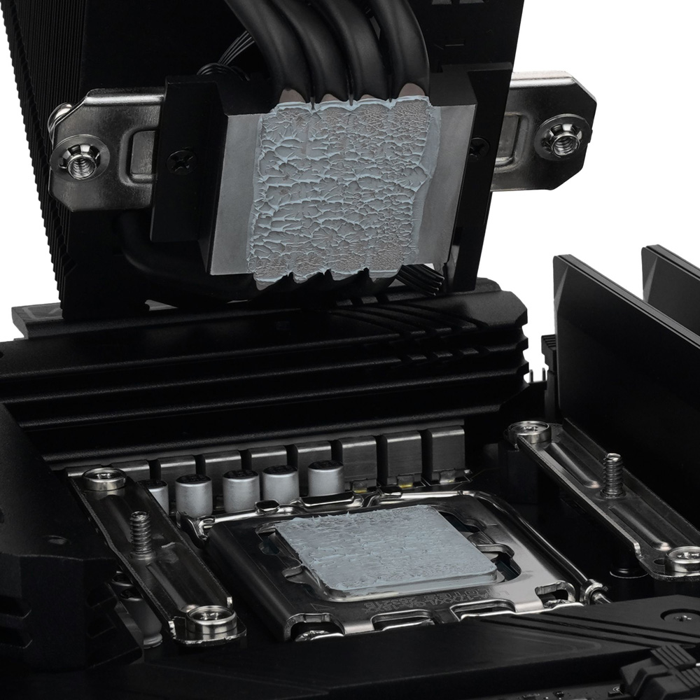 - 塗布が容易で、CPUクーラーの圧力だけで自然に均一に広がるため、付属のへらやアプリケーターを使わずに塗布できます。